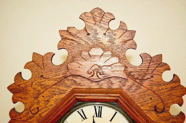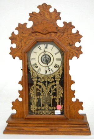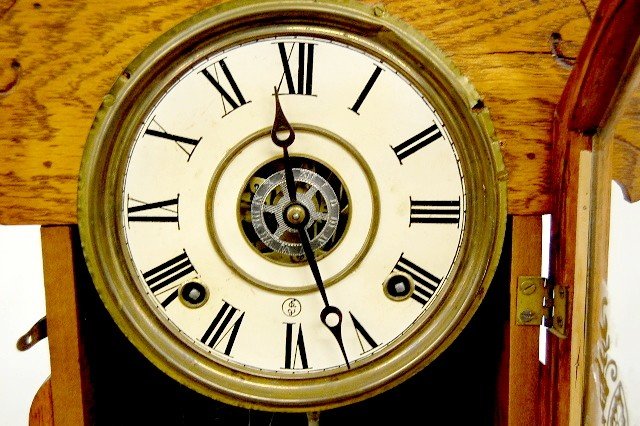 Ingraham Oak T & S Kitchen Clock w/ Alarm: paper dial.