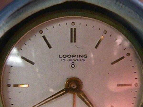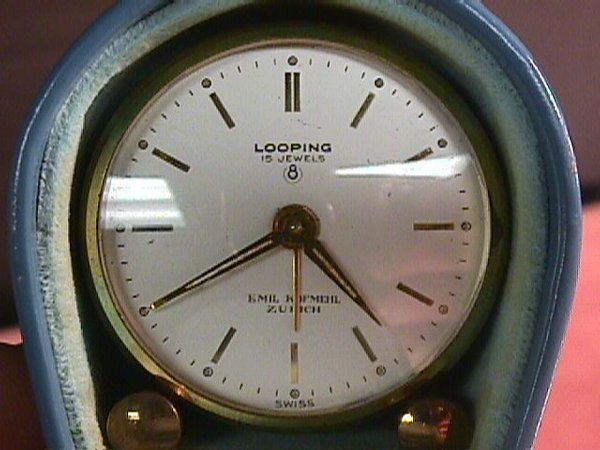 LOOPING MINIATURE SWISS ALARM CLOCK IN CASE