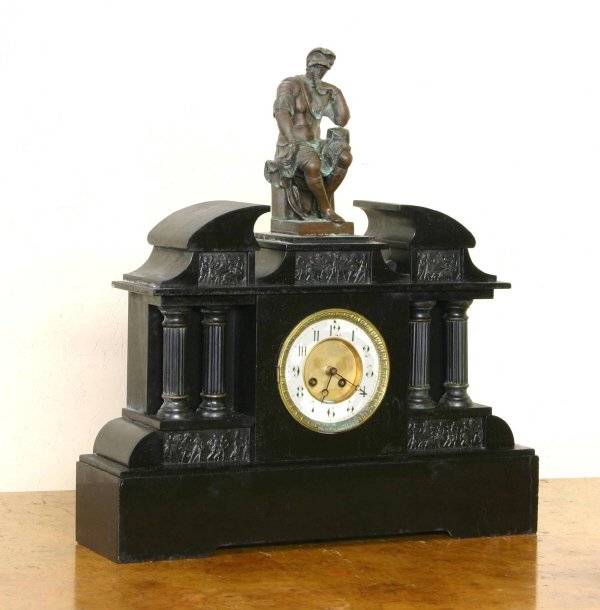 Black Marble & Slate Clock with Bronze Figure at the top.