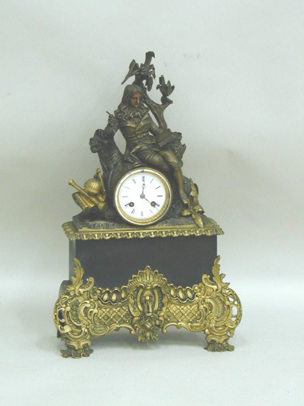 Restauration black marble gilt and patinated bronze mantel clock Gorini freres et cie Paris, 20”h, circa 1820