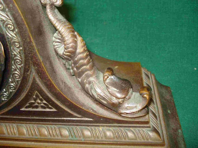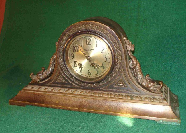 A outstanding gift idea for that mariner who yearns for sea life off season while standing close to his fireplace. A model of Chelsea clock we rarely see on the market, featuring a cast brass cased mantel adapted clock with casting standards of the highest quality. Chelsea, the famous makers of ships bells clocks, later made some inventive mantel and desk clocks, became known for their very high quality brass castings.