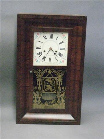 Clock, OG Type, Rosewood Case, 30 Hour, Label of Southern Clock Co., Refinished, 25 3/4” H x 15 3/8” W x 4 1/2” D, Complete with Pendulum and Key, Appears in Running Cond., $75-$125.