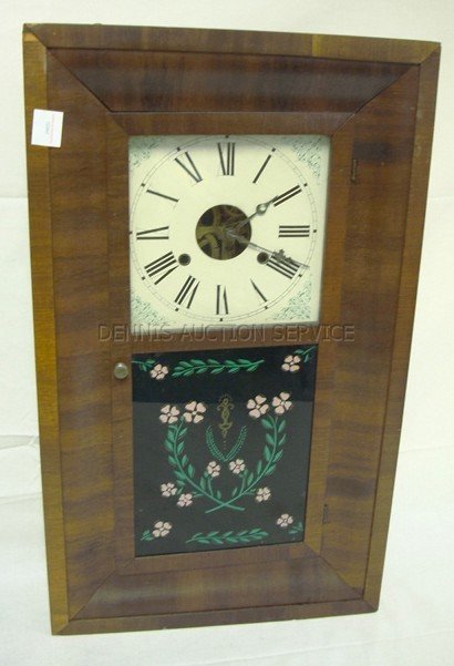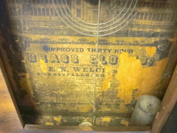E.N. WELCH OG MANTLE CLOCK; 25 3/4 IN H, 15 1/4 IN W, REVERSE PAINTED DOOR