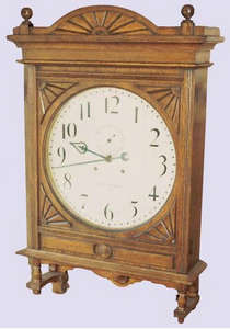 Seth Thomas (1786-1859) became an apprentice in the cabinetmaker-joiner trade in the early 1800s. He worked with Silas Hoadley around 1808 to 1810, under the supervision of Eli Terry near Waterbury, Connecticut. Eli Terry needed help to fulfill a contract for four thousand wooden hang-up clocks, including their movements, pendulums, dials, and hands. Thomas, as a joiner, assembled the clocks using his wood-working techniques. All clocks were in running order when he finished.