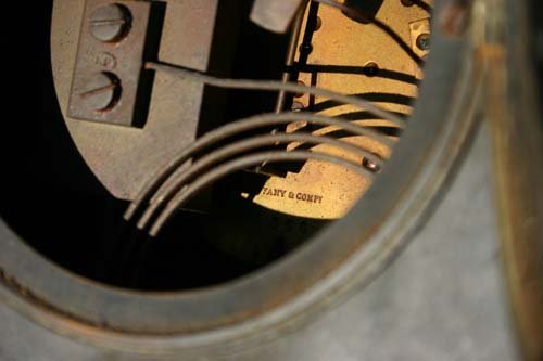 19thC sgnd Tiffany marble mantle shelf clock – 8 3/4″ tall x 11″ wide