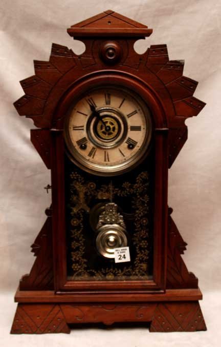 Carved wood shelf clock, 21″hx 13″L x 4 1/2″w