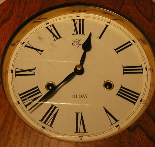 Elgin Oak 31 Day, Japan, Wall Clock 19″H x 12″W, Like New